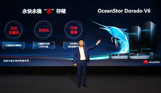 华为IT产品线副总裁、智能数据与存储领域总裁周跃峰发布智能存储OceanStor Dorado V6