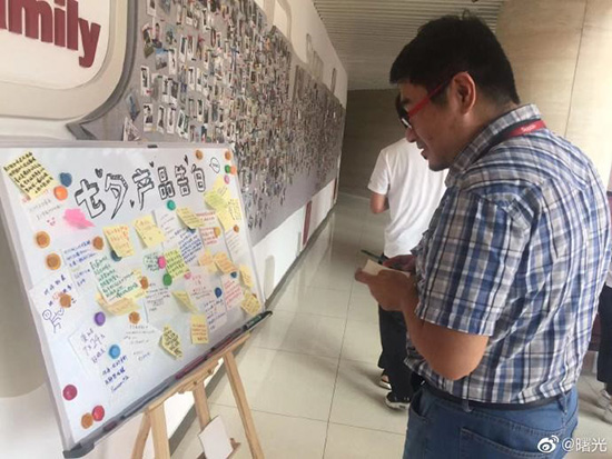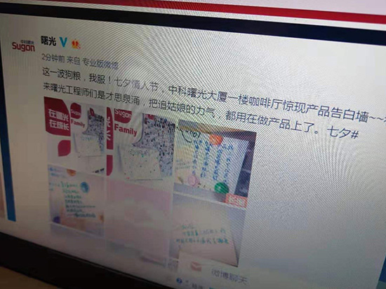 图说:曙光公司内的“产品告白墙”(来源曙光官方微博)