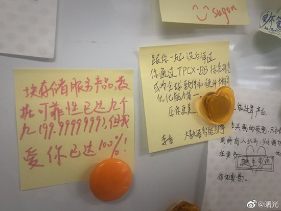 通过曙光发布的“产品告白板”照片来看,这些工程师对产品的真情流露可粗分三种:1、保证让你性能好;2、一起成长,走遍天涯海角;3、我的产品最厉害!