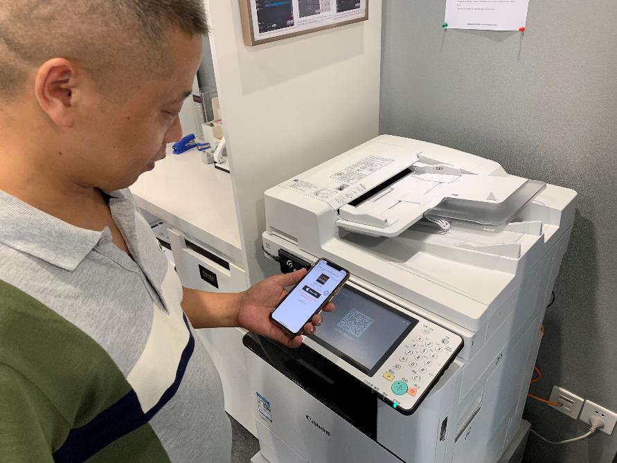 为了有效应对入驻用户移动办公需求,快易名商在万通中心部署了包含佳能(中国)多功能数码复合机以及定制版“超级云佳印”在内的智能办公解决方案。 “超级云佳印”是佳能(中国)基于云技术研发的智能解决方案,不仅能够满足共享办公用户的即时打印需求,无需专业人员配置一键自助安装打印驱动,更让用户打破了传统空间的限制,轻松实现移动文印输出。通过和快易名商自有APP的后台联动,入驻用户只需要通过快易名商的APP扫描佳能(中国)复合机上的二维码,即可直接打印手机微信端收到的文件。通过精简文印流程、优化用户体验,“超级云佳印”将为共享办公用户带来真正智能高效的移动办公新体验。