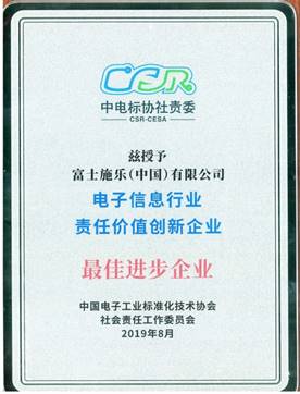 富士施乐(中国)因“印爱不同”公益教育和资源循环项目获评“中国电子信息行业社会责任建设责任价值创新企业 —— 最佳进步企业”。 其中,“印爱不同”是富士施乐(中国)利用核心业务帮助弱势群体的系列公益教育项目,主要包括为弱视儿童免费印制大字体教材、帮助心智障碍人士扫描和保存绘画作品、为留守儿童与志愿者扫描和打印往来信件等志愿者项目;富士施乐位于苏州的整合资源循环工厂是业界唯一进行再利用和再生利用的整合资源循环工厂,工厂早已实现了“零填埋”、“零污染”、“零非法丢弃”的环保目标,并被工信部列入“首批循环经济试点企业”和“机电产品再制造示范企业”。