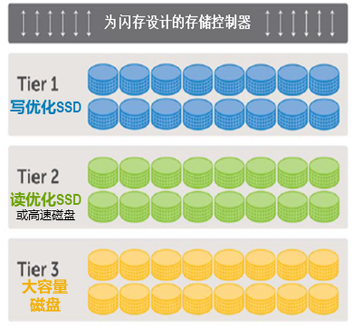 2读写分离:SC存储采用业界独有的闪存分层技术,可以更好地平衡读密集SSD和写密集SSD的配置,以获得好的性价比。