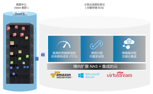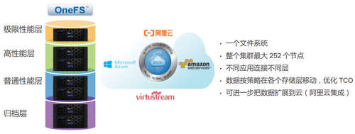 ECS作为客户云端数据的看门人,可提供私有云无缝连接的解决方案,它与Isilon集成,可将Isilon中需要长期归档和近线访问的数据无缝上传至云端保存,是Isilon的完美拍档。