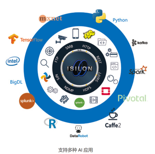 更重要的是,Isilon可以“装下”众多数据类型、协议、应用软件和分析软件,如原生HDFS、原生Hadoop等等,完美配合Hadoop大数据就地分析,已经有上千名用户在其原有数据集合上即时实现了Hadoop大数据分析,无需任何数据导出和迁移,Isilon即可为客户提供极具业务价值的分析结果,还能搭配完整而有弹性的AI解决方案,真正实现“大数据,炼真金”。