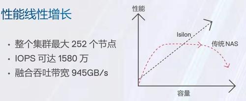如图所示,Isilon这个“炉子”可以用一个命名空间“装下”PB级的数据,通过业界60PB单一文件系统OneFS,使用户管理数十PB数据如同管理1PB那样简单。
