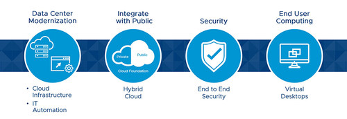 通过在VxRail中引入可自动部署并简化混合云运维的VCF,戴尔科技构建了一个从数据中心到云和边缘环境的完整的、自动化的、全包式混合云IT基础架构—VMware Cloud on Dell EMC,在软件定义数据中心基础上,通过集中统一管理,提供高性能计算、存储和网络软件及服务。