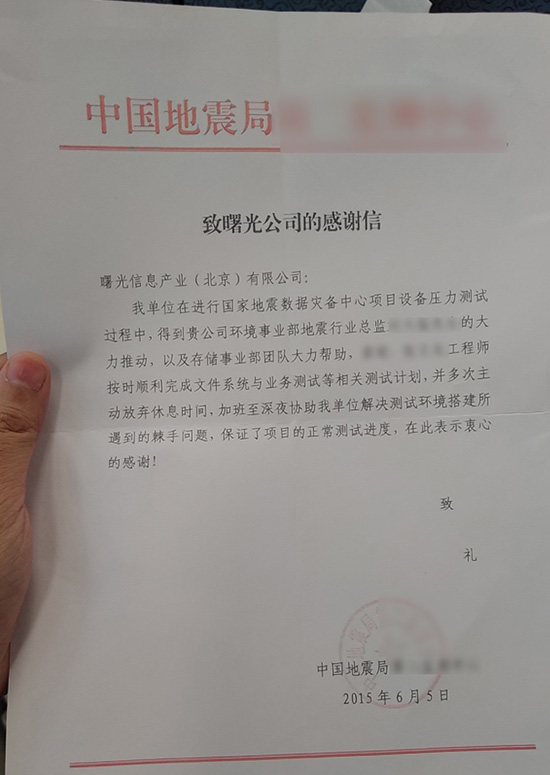 因此,项目结束后王老师单位还发来感谢信,但自己却因“腼腆”没能当王老师面说句“感谢”。石工程师介绍,如今他和团队经手的存储项目已有数百个,总存储容量达EB级别。这些成绩与类似王老师这样客户的支持和鼓励不无关系。