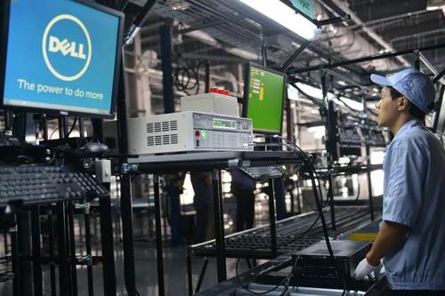 ▲戴尔(中国)成都工厂内,一位工人正在操作设备