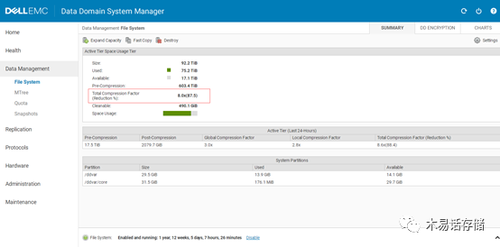 你没有看错,压缩比是8.0,也就意味着100T的数据,存放在DD上只要12.5T的可用空间就可以了,这对企业的来说,大大降低了运维成本。其实对于我管理DD来说,并没有投入很多的时间。管理备份主要的时间还是在备份策略的设置,调整备份时间窗口以及空间的回收等等。