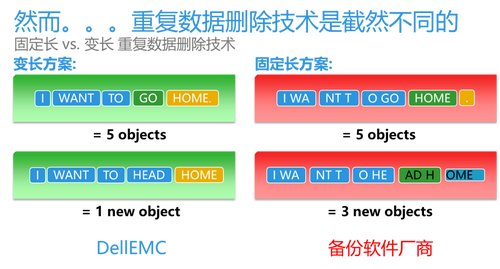 变长和定长去重技术是两大阵营的技术核心,每次我与客户交流,以下两张都是必备的幻灯页。