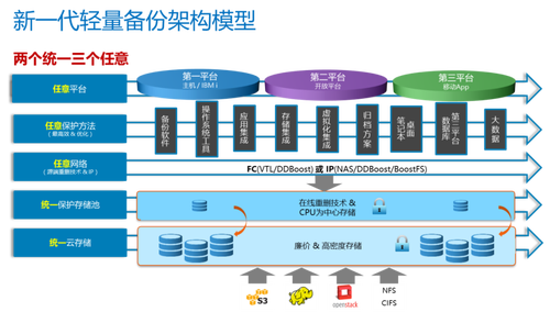 DD强大是用户们有目共睹的,下面是我在客户交流过程中必然使用的另一张幻灯片——“两个统一,三个任意”。