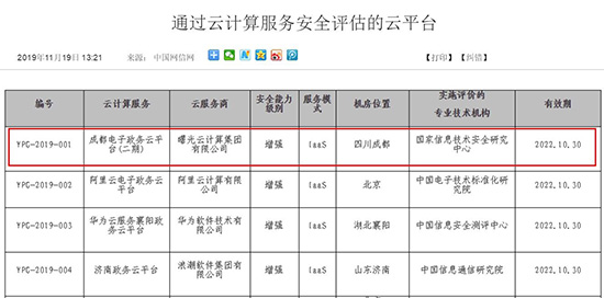 中科曙光等公司通过网信办云计算服务安全评估审查