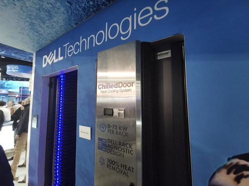 不过PowerEdge C6420虽好,只适合全新采购的项目,那么客户现有的机柜如何能够享受到液冷的优势呢?对此,戴尔科技也有了精心的准备。据Tom介绍,目前戴尔科技已经与业界著名的Motivair公司展开合作,推出了一款名为ChilledDoor(冷门)的机柜式冷却系统,在看到这套系统的第一眼,我就被震惊了——的确是很不一样。