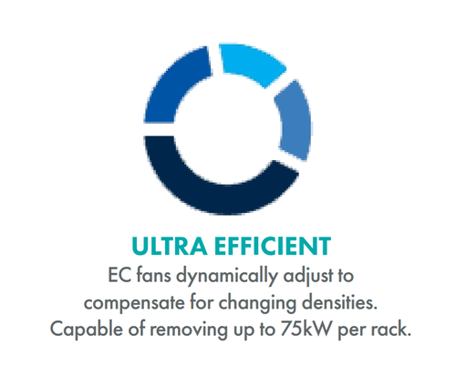 具体规格方面,ChilledDoor系统具高可达75kW机架冷却能力,符合Open19和OCP设计标准,可以兼容绝大多数机架设备。通过内置的大功率可调节PLC控制系统,ChilledDoor系统可以帮助服务器机架实现主动冷却,多达5个可热交换的离心风扇更能够实现快速更换和扩展。