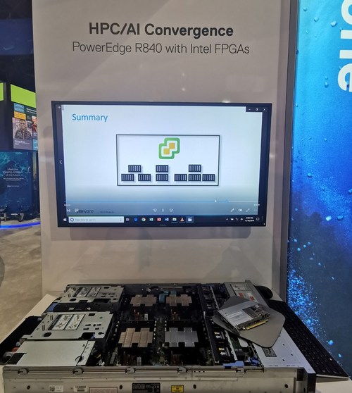 刚刚介绍了戴尔科技与英特尔傲腾数据中心持久内存所进行的合作,其实在FGPA领域双方也已经合作日久。在现场,我们看到了Dell EMC PowerEdge R740和PowerEdge R840两大系列产品与英特尔FPGA的结合。