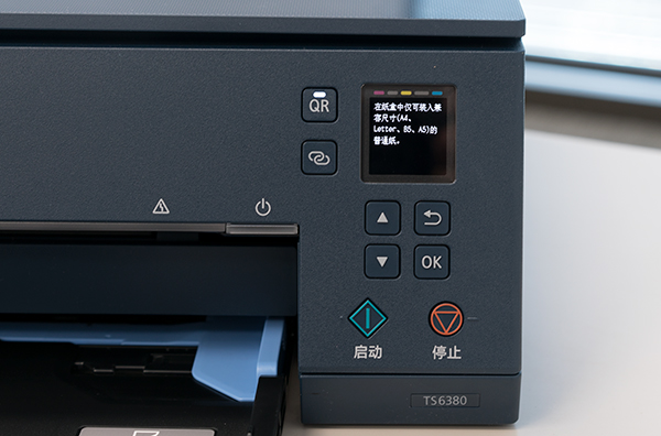 佳能TS6380的OSD操作按键位于打印机前面板的右侧,由于前面板本身提供一定的固定角度设计,无论是站立还是坐在打印机边操作,按键手感和可视角度皆非常舒适。由于佳能TS6380采用多种设备智能连接的方式,排除了繁杂的按键设计,逻辑简单直观,更可扫码观看操作教学视频,学习的便利性得到保障。