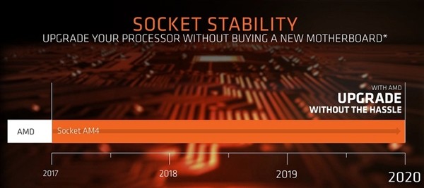 从第七代APU开始,AMD一直坚持使用AM4一种封装接口,一二三代锐龙都是如此,提供了绝佳的兼容性,老主板刷个BIOS就能上新一代处理器。