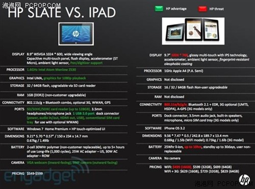 每当苹果公司发布一款新品之后就会有不少厂商推出相似的产品并号称将挑战苹果,就像iPod杀手、iPhone杀手一样。虽然到目前为止仍没有真正的杀手级别产品现身,但是依然阻止不了厂商们对iPad的挑战,惠普公司的平板电脑产品Slate真机照片已经流出。