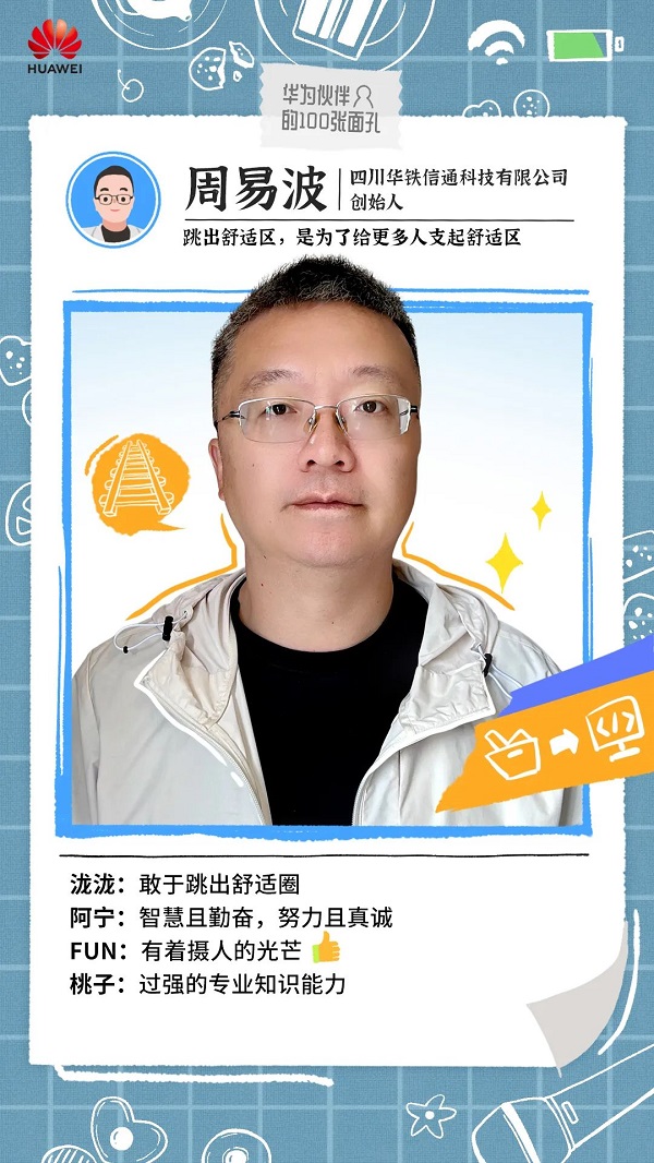 面对不断迎面而来的挑战,周易波和他的四川华铁信通科技有限公司一路“升级打怪”,朝着自己梦想的方向稳步前行。如今,华铁信通已经成为了西南地区轨道交通行业领先的技术服务商,与华为一道在这个领域深耕细作,奔向行业数字化与智能化的未来。