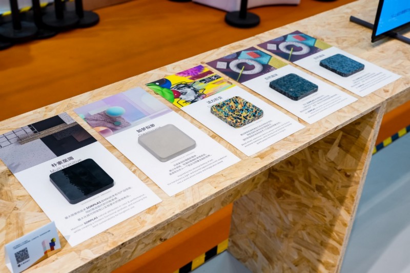 在传统印象中,环保材料往往受到颜色、纹理等方面的限制,难以满足设计师多样化的需求。此次进博会亮相的SORPLAS CMF色板样品则打破了传统可再生材料局限,展现出丰富的颜色和纹理风格效果。现场共展现5款不同颜色、纹理的SORPLAS CMF样板风格。从通透轻盈的视觉效果到自然纹理的趣味设计,再到大胆的色彩表达和原材料的本真质感,呈现了环保材料在美学和质感上的丰富可能。
