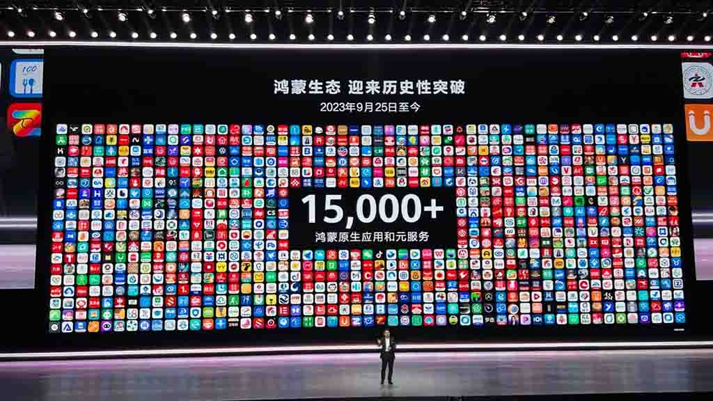 在2023年9月25日,华为的合作伙伴开始着手开发这些原生应用,截至2024年10月,这一数量仍在不断增长。华为消费者业务集团董事长余承东在HarmonyOS NEXT的发布会上,通过一幅巨大的展示屏展示了所有应用程序图标,正式宣布了这一重要消息。