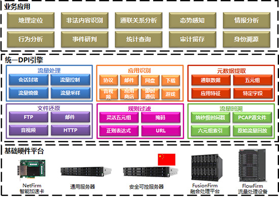 SUNA集合了曙光多年来在DPI和网络流量内容分析系统领域的软硬件技术积累和安全相关行业的工程经验,可实现全流量分析,实时感知和分析网络中传输的协议、流量、会话、应用等信息。