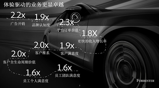 近日,Adobe与知名市场分析机构Forrester发布了一项关于汽车行业在2019年数字趋势的调查报告,面向来自全球三千多家汽车相关企业的数万名受访者,进行了多重维度的调研。报告结果证实了全球范围内专注于用户体验的汽车企业在业务表现上要优于其他企业,用户体验的优化为企业的员工团队及个人满意度、客户全生命周期价值、客户满意度、收入增长率和品牌认知度等方面都能够带来两倍甚至更多的收效。放眼国内市场,2017年至2018年间,受居住集中化、养车成本不断提升等限制,国内汽车的换购与增购需求并未被大幅激发,整体市场已趋向饱和,这一趋势也导致车企的竞争更加激烈。如何通过打造迎合用户需求的体验,并实现精准触达,成为了车企们共同关注的议题。