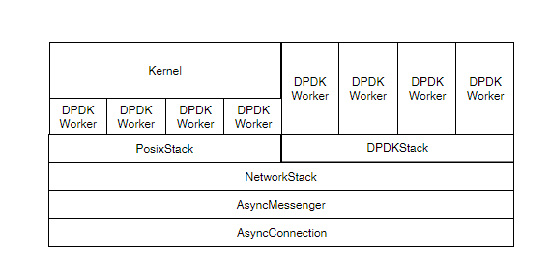 从上图我们可以看到通过继承NetworkStack,添加不同的实现即可支持不同的传输协议,如:PosixStack、DPDKStack、RDMAStack。