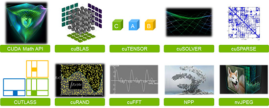 持续扩充的CUDA-X HPC库列表会定期更新,并精心调优,以便充分利用诸如混合精度运算等新型算法。列表内的线性代数库包含业内最佳的BLAS、Math和SOLVER库,为编程人员提供了广泛的功能性与灵活性。此外,CUDA-X HPC还拥有一系列其它库,包括:适用于经优化的张量原语(cuTENSOR)、快速傅里叶变换(cuFFT)、处理图像与信号的性能基元(NPP)、并行算法与数据结构(Thrust)以及多GPU配置(NCCL)。
