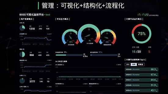 第二,消除运维管理黑洞。在以前运维管理的时候,运维管理就像一个黑盒,对于用户而言完全不可见,包括运行状况、占用率、有无节点故障等,客户会很担心。而今,在日常场景下,便会看到计算节点,并获知哪些节点可能会发生问题。这对客户来说,一切一目了然,一切尽在掌握中。