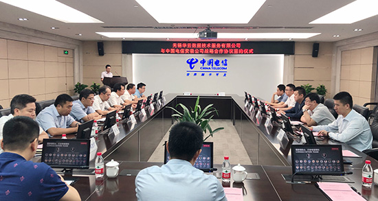 2019年8月30日上午,中国电信股份有限公司安徽分公司与华云数据举行战略合作签约仪式。中国电信安徽公司党委书记、总经理唐珂,中国电信安徽公司党委委员、副总经理郑家升,中国电信淮南分公司党委书记、总经理华新民,中国电信安徽公司政企客户部、云智能事业部总经理沈阿强,中国电信合肥分公司党委委员、副总经理刘松,中国电信淮南分公司党委委员、副总经理芮慧勇,中国电信安徽公司云能力中心总经理姚翔,华云数据董事长、总裁许广彬,华云数据副总裁袁祖怀等领导出席本次签约仪式。