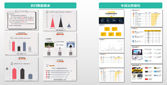 此外,平台开发了课程评价体系、考试问卷等功能,对讲师质量和学习效果进行双向评估,通过数据统计分析功能对整体活跃度、课程满意度和学员学习数据的实时监控,来确保学习效果可跟踪、运营提升有依据。