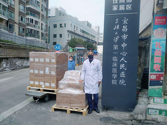 宜昌市中心人民医院医护人员接受捐赠物资