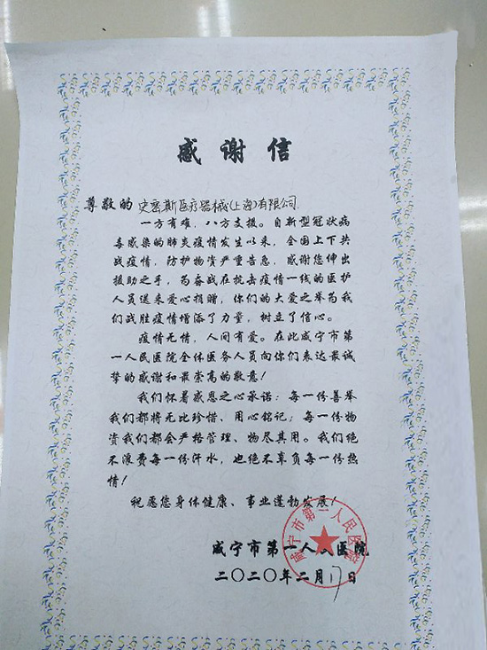 伴随着逐渐到位的捐赠物资,前线不断传来激励人心的反馈,一直在主持推进本次捐赠工作的史密斯医疗中国区代理总经理 Emi Fukutome女士万分感慨:“在这个特殊的时期,在总部领导层的支持下,我们为中国做了一些有意义的事情,这让我非常感动。大家齐心协力,一定可以早日战胜疫情。”