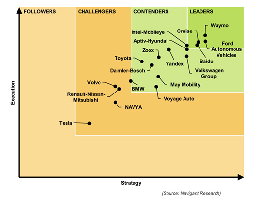 NVIDIA在自动驾驶汽车行业报告中位列榜首