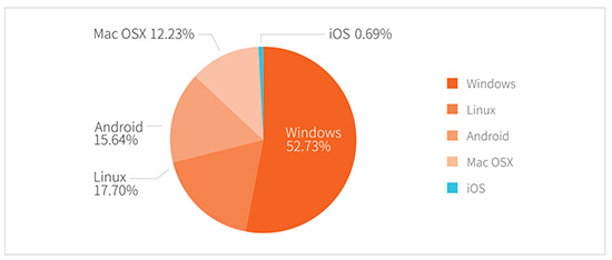就移动端的攻击载体而言,Bots攻击呈现出对经济成本、系统破解难易度等方面的依赖。市场占有率更高、价格更低廉、破解难度更低的Android系统明显比iOS得到更多Bots攻击者的偏爱。