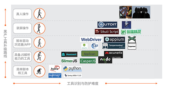 相对于普通Bots,APBs具备多种多样的“反反自动化攻击”能力,自动更换IP、特征隐藏、拟人化操作、验证码识别等技术已然成为标配。在一些对抗比较激烈的场景,例如薅羊毛、爬虫、抢报名等,APBs已经大规模应用。