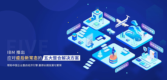 IBM应对疫后新常态的五大整合解决方案覆盖了:网络信息安全、全球供应链优化、工作场景重塑、流程自动化、智慧多云管理。