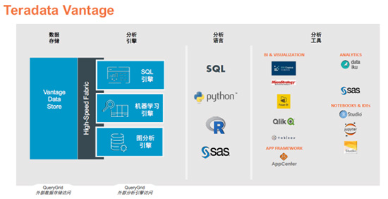 作为面向未来需求大数据分析架构,Teradata Vantage紧密整合最佳分析功能与引擎,提供敏捷的可扩展平台,提供描述性、预测性与指示性分析、自主性决策、机器学习、可视化工具等广泛功能。