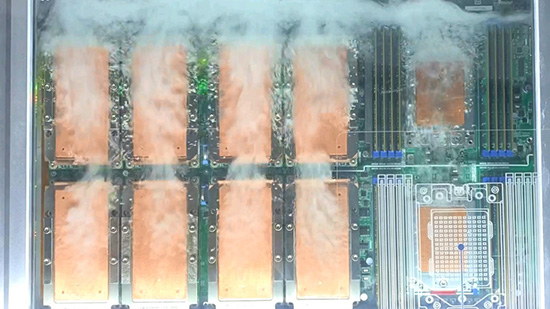 传统数据中心能耗问题成为大家关注的焦点,而“绿色化”、“智能化”是第四代数据中心的标志。曙光相变液冷技术,将计算机设备“浸泡”在液态冷媒中,通过液体相变为气体带走热量,实现高效散热,更加绿色节能。