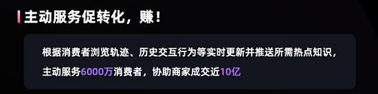 根据“快报”数据,七鱼平台根据消费者浏览轨迹、历史交互行为等实时更新并推送所需热点知识,助客服人员主动服务了6000万消费者,协助商家成交近10亿,真正实现了客服带货。