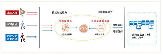 瑞数信息利用动态技术隐藏攻击入口,主动识别和阻挡传统防护手段乏力的Bots自动化攻击,同时利用AI人工智能技术,将安全数据与海量威胁情报分析相结合,为用户提供全景的安全威胁可视、攻击溯源定位等功能,为企业客户提供从基础设施到业务的全方位安全保护。