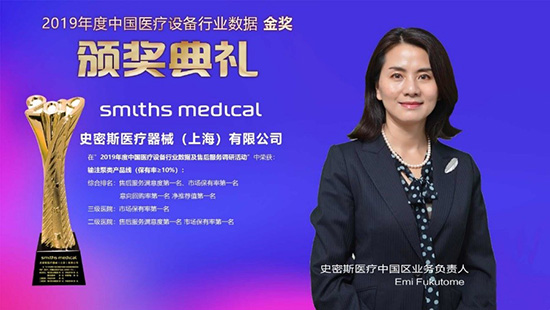 “2020年第十届中国医疗设备行业数据发布大会暨医疗设备售后服务体系提升及持续发展高峰论坛”于7月4日在线上成功举办,史密斯集团下属的史密斯医疗再次荣膺中国医疗设备行业数据产品线金奖,连创了“八年七冠”的优异成绩,标志着史密斯医疗产品和服务在业内受到广泛认可,同时也印证了史密斯医疗多年来深耕中国,践行为客户提供安全、可靠、便捷产品的坚定承诺。Emi Fukutome女士代表史密斯医疗中国区公司领取了这一殊荣。在会后的深度访谈中,史密斯医疗中国区商业副总裁姚明先生针对本次获奖接受了采访并分享了行业洞察。