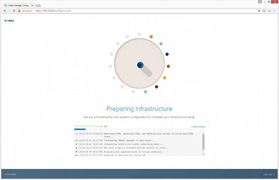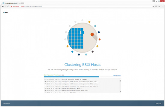 基础架构设置正确之后,VxRail将开始建立ESXi主机群集并自动完成储存配置。