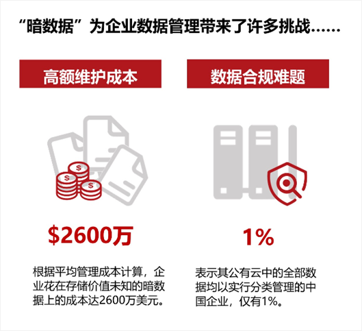 对企业与组织而言,数据量的激增将带来诸多影响,首当其冲便是存储与治理方面的难题。无论是使用本地存储或是云存储,存储大量的数据都意味着一笔不菲的开销。在治理上,麻烦更是层出不穷,暗数据是诸多棘手难题的核心。