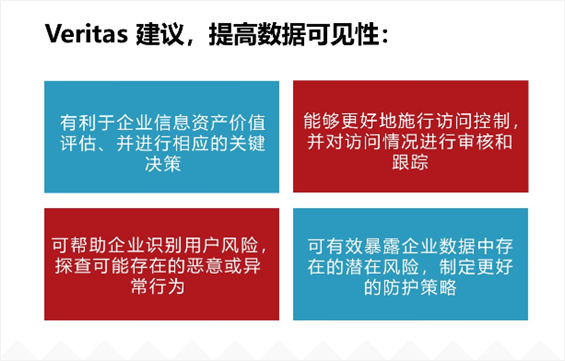 想要应对数据大爆炸及暗数据带来的难题,企业需建立高效的数据管理策略,对数据进行全生命周期的管理。在Veritas看来,对数据“洞察力”和“可见性”的投资是跨越幽谷的关键,企业对数据了解的越透彻,就越能够准确判断其中的价值与潜在风险。