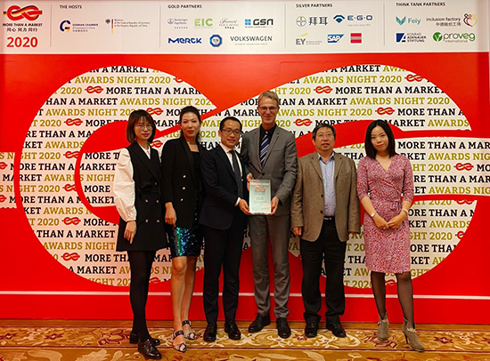 10月29日,由德国驻华商会和德国驻华使领馆共同主办的“同心、同力、同行”(More Than a Market)奖项颁奖晚会在上海和平饭店举行,该活动旨在表彰那些在社会参与方面表现杰出的德国在华企业,在德国和中国组织之间建立合作关系,并促进公益项目创意和最佳实践的交流。