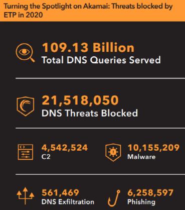 Enterprise Threat Protector是Akamai的关键防御层之一、使用了Akamai的研究和数据并辅以第三方数据。该解决方案旨在识别恶意域名,并在DNS和HTTP级别阻止它们。Enterprise Threat Protector可以应对犯罪分子使用的几种关键手段,包括渗透、命令和控制(C2)以及网络钓鱼。