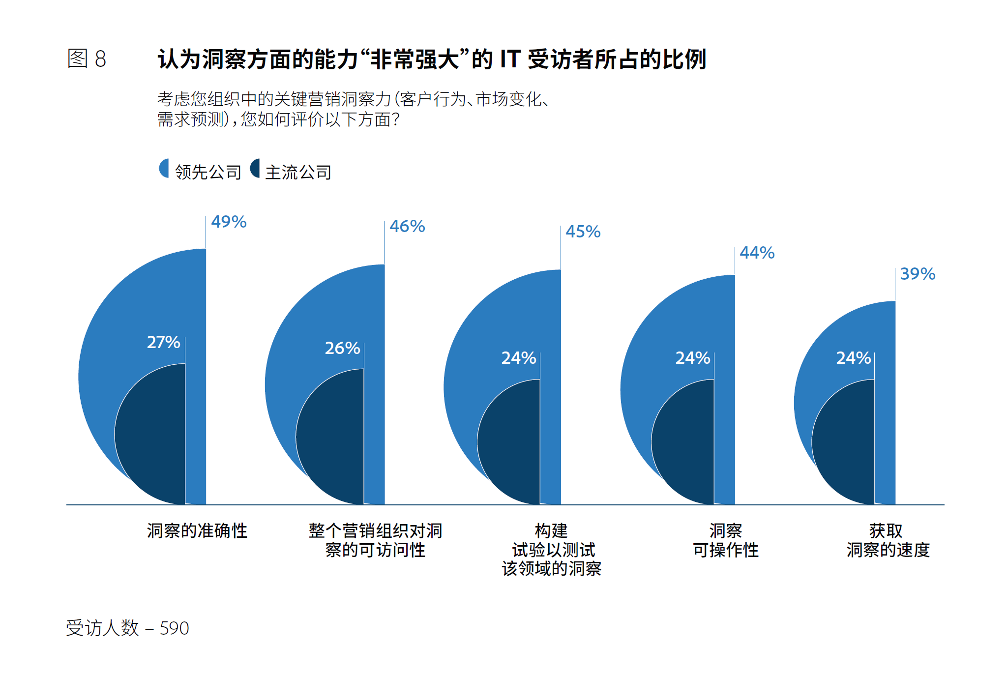 调研表明,越是领先的绩优的企业就越具备较高的数字化素质,越能更好地理解客户旅程。他们在新客户旅程、客户行为归因、客户心态、客户忠诚度、旅程摩擦点、购买驱动因素等方面的理解都普遍优于一般的公司。这些绩优企业在客户洞察的速度、准确性和可操作性等方面也都普遍好于普通公司。