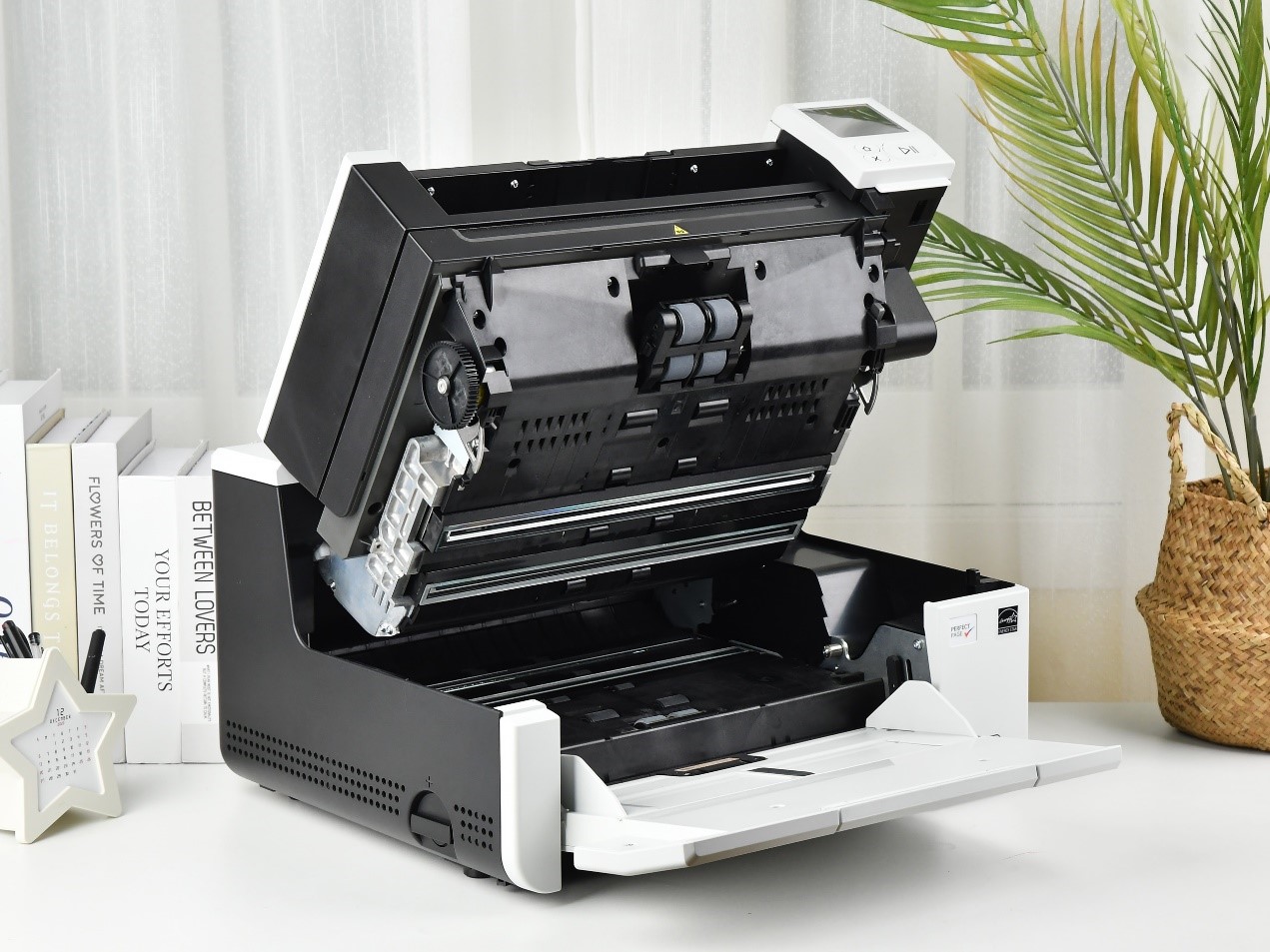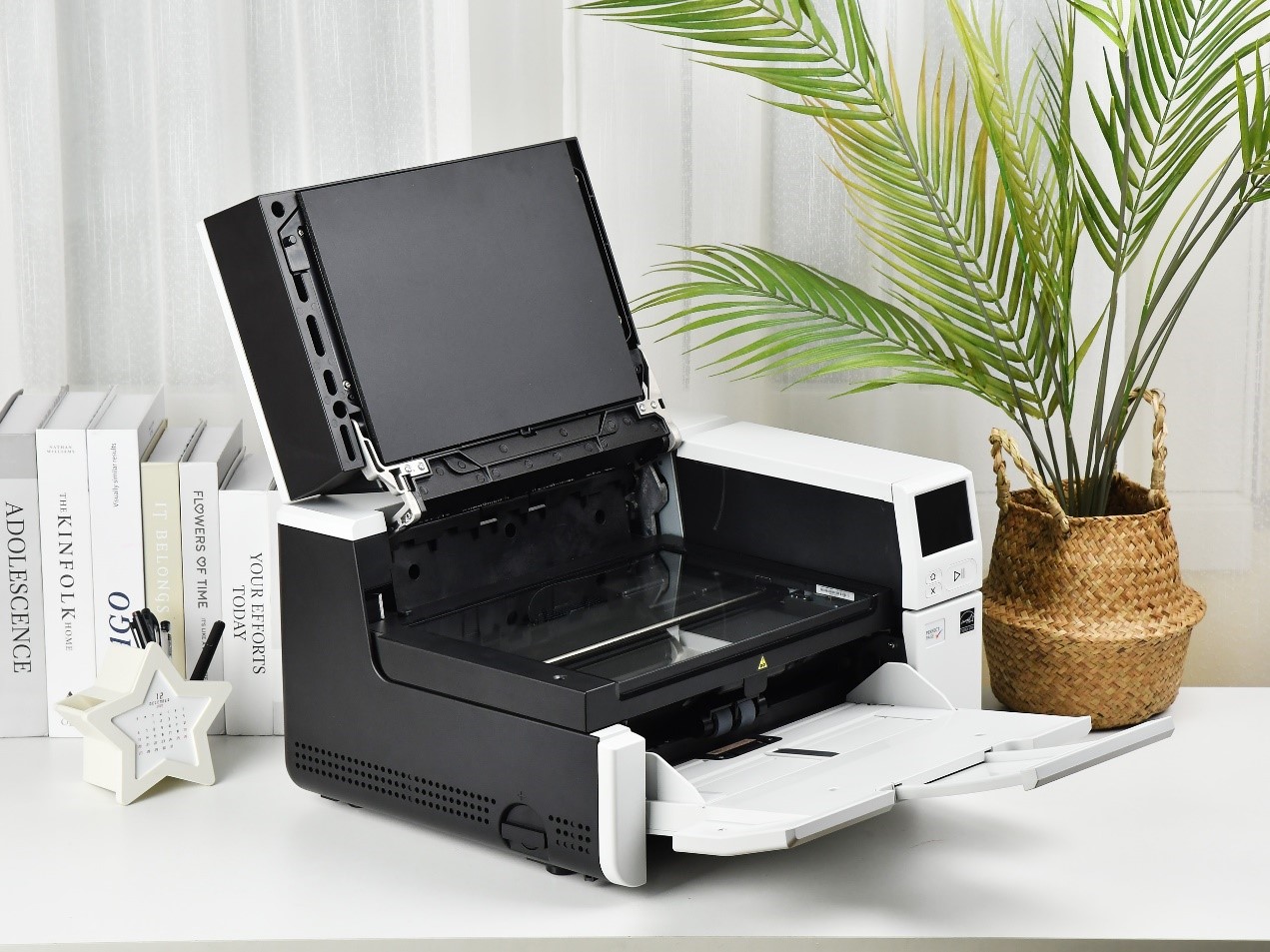 首先要说的是柯达S3100f本身主机的处理能力非常强大,这样做的好处在于可以不依赖用户主机的性能,一般来说200页每分钟的处理对于一些公司沿用的比较旧的电脑可能会有一些负担,但柯达S3100f的内置了影像处理芯片,影像处理扫描仪几乎都通过内部搭载的芯片处理,哪怕是性能比较弱的主机也能拥有高速扫描,通常意义上的理解就是过去是扫描仪负责捕捉,图像压缩转换由电脑的处理器完成,现在这个工作的大部分都转移到了柯达S3100f内置的芯片来处理,这样无论是计算量还是对传输接口的依赖程度都更低了。为了方便扫描书籍柯达S3100f自带的A4平板扫描采用了一种类似手机屏“无框”的设计,这样就可以把书脊卡在边缘,获得平整、完整的书籍扫描效果。